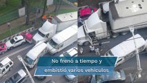 Tráiler choca 5 autos particulares y genera riña entre conductores
