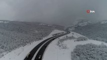 İstanbul'un Büyükçekmece ilçesinde gece ve sabah saatlerinde yağan kar sonrası oluşan kartpostallık görüntüler, dron ile havadan görüntülendi.