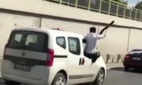 Şanlıurfa'da bir kişi, seyir halindeki aracın kapısını açarak havaya ateş etmeye çalıştı. Yanında çocuklar olmasına rağmen silahını ateşleyen şahıs, dengesini kaybederek araçtan düştü. O anlar çevredeki vatandaşlar tarafından görüntülendi ve sosyal medyada büyük tepki çekti.