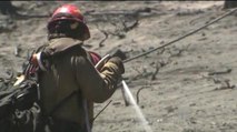 Acceso al área destruída por el incendio forestal de Cold Springs
