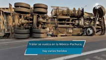La circulación en la autopista México-Querétaro, estuvo cerrada por más de dos horas debido a la volcadura de un tráiler de carga.