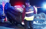 Una joven conductora terminó volcando su auto compactó aparentemente al conducir a exceso de velocidad, resultó con lesiones menores.