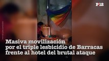 Masiva movilización por el triple lesbicidio de Barracas frente al hotel del brutal ataque