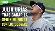 El festejo de Julio Urías tras ganar la Serie Mundial con los Dodgers