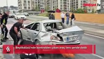 Beylikdüzü'nde kar küreme kamyonunun çarptığı otomobil ters döndü