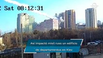 El momento en que un misil ruso destruye un edificio residencial en la capital de Ucrania