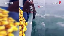 Artvin’de denize düşen karaca balıkçılar tarafından kurtarıldı