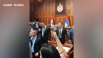Sırbistan Parlamentosu'nda kaos! Milletvekilleri sis bombası attı