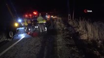 Beton mikseri yoldan çıkarak devrildi: 1 yaralı