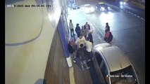 Una cámara de seguridad captó el momento exacto del accidente de un camión contra un tumulto de personas en las afueras de un bar