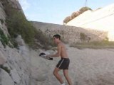Atterrissage difficile d'un double saut acrobatique... la tête dans le sable !