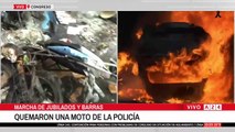 A24.com - 🚨MÁXIMA TENSIÓN EN CONGRESO: PRENDIERON FUEGO UN MOTO DE LA POLICÍA DE LA CIUDAD