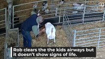 *GRAPHIC BIRTH CONTENT* Unresponsive newborn goat is saved by South Yorkshire farmers