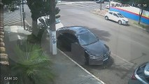 Câmeras de segurança mostram como ocorreu o acidente no Centro de Cascavel nesta manhã