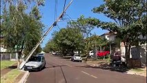 Carro derruba poste no Conjunto Riviera e rede de alta tensão fica suspensa na via
