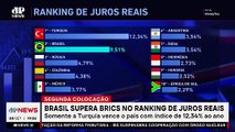 O Brasil ocupa a quarta posição no ranking dos maiores juros reais do mundo, após a decisão do Banco Central de elevar em 1 ponto percentual a taxa Selic, agora em 14,25%, segundo relatório da MoneYou.