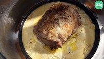 Roti de porc à la moutarde sauce crème échalotes