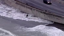 Un homme se met au mauvais endroit pour contempler les énormes vagues