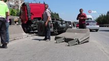 Otomobile çarpmamak için manevra yapan tır beton blokları parçalayıp karşı şeride geçti