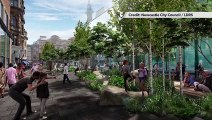 The Newcastle United Carabao Cup trophy parade, as viewed from the Eldon Square multi-storey, on Percy Street, Newcastle-upon-Tyne. The Magpies beat Liverpool 2-1 in the final to win their first silverware since 1969. The parade took place on March 29.