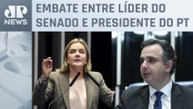 A ministra das Relações Institucionais, Gleisi Hoffmann (PT), respondeu às críticas do governador de Goiás, Ronaldo Caiado (UB), sobre a PEC da Segurança. Gleisi afirmou que a PEC visa aprimorar as condições de segurança, sem prejudicar a autonomia das forças de segurança estaduais.