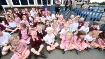 The six year old Bridgnorth losing his hair for charity in the playground..