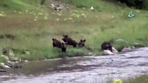 Hakkari Yüksekova'da seyir halinde olan bir araç içerisinden domuz sürüsü görüntülendi. Sürünün bir süre yol kenarında ilerleyip dağlık alana yöneldikten sonra gözden kaybolduğu kaydedildi.