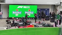 O duelo de titãs terminou com colisão! Na tentativa de passar Verstappen, que estava cedendo posição para o britânico, Hamilton bate no carro da Red Bull. Assista!