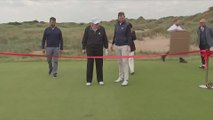 TRUMP TAKES FIRST SWING after OPENING Trump International Golf Links Aberdeen in Scotland
