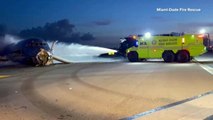 Avião de passageiros pega fogo ao pousar em Miami