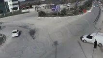 Hafriyat kamyonu, otomobili böyle sürükledi