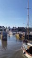 Watchet Town Crier Dave Milton marks the return to automatic working of the town marina's gate.