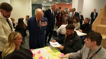The King visits Impact Hub Yorkshire, which supports businesses tackling social challenges. During the visit His Majesty meets organisations helped by the hub, which promotes sustainable local enterprise. The hub is part of a global network with more than 120 locations worldwide. Report by Covellm. Like us on Facebook at http://www.facebook.com/itn and follow us on Twitter at http://twitter.com/itn