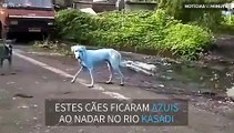 Animais ficam azuis após carreta se acidentar e derramar corante em córrego