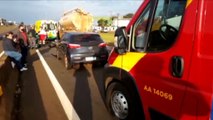 Três carros, um caminhão e duas motocicletas se envolvem em acidente, na BR-277