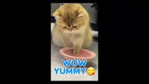 Feline enjoying food with sweet expression wow food is yummy.
