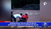 Huánuco: Mujer embarazada cruza río en balsa ante la falta de puente