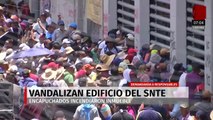 En República de Venezuela, alcaldía Cuauhtémoc, maestros de la CNTE y CETEG irrumpieron frente al edificio del SNTE e hicieron quema de objetos como parte de sus protestas.