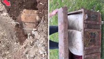 Toprağın altından çıkardıkları sandığı kamera önünde açtılar! İçinden neler çıktı neler
