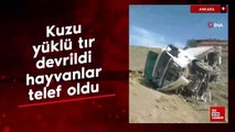 Ankara'da kuzu yüklü tır devrildi, hayvanlar telef oldu
