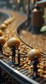Step inside a magical coffee factory where tiny men, each smaller than a human finger, work tirelessly to crush coffee beans and fill cups using giant automatic machines. From climbing machines to operating levers, these little workers make the coffee process fun, surreal, and full of charm! Perfect for fans of tiny world animations, coffee lovers, and kids.
