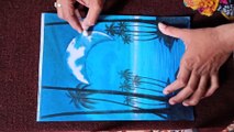 How to draw a moonlit Tropical Night picture//Moonlit night scenery drawing