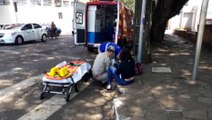 Mulher é socorrida pelo Siate após cair na calçada no Bairro Santos Dumont