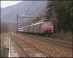 Passage à Artemare d'une UM 3 de Z 2 composée de deux Z 9600 en livrée violettes d'origine et d'une Z 9500 bleue sur le TER 17572 Saint-Gervais-les-Bains-le-Fayet - Lyon-Part-Dieu (23 Février 2008).