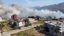İzmir'in Buca ilçesi Kaynaklar mevkiinde çıkan orman yangını, hızla büyüyerek yerleşim yerlerini tehdit etmeye başladı.