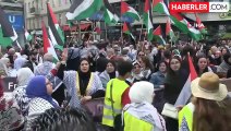 İsrail'in Filistinlilere yönelik gerçekleştirdiği soykırımın durdurulması için protesto yürüyüşü düzenleyen yüzlerce kişi, Filistin bayrakları, İsrail saldırılarında yaşamını yitiren çocukların fotoğrafları ve "Siyonist rejimin Filistin'deki soykırımını durdurun" yazılı pankartlar taşıdı.