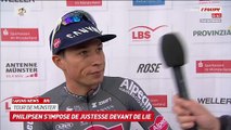 La 112e édition du Tour de France s'est élancée ce samedi avec au programme 184,9 kilomètres autour de Lille. Et au terme d'une 1ère étape nerveuse, c'est Jasper Philipsen qui s'est imposé et qui s'empare donc du maillot Jaune. Cette première journée a été marquée par un coup de bordure dans le final. Si Jonathan Milan (Lidl-Trek) ou autre Tim Merlier (Soudal Quick-Step) ont été piégés, Philipsen était lui bien placé et a réussi à lever les bras au terme d'un sprint parfaitement maîtrisé, devançant Biniam Girmay (Intermarché-Wanty) et Soren Waerenskjold (Uno-X Mobility). Parmi les favoris au classement général, Tadej Pogacar (UAE Team Emirates XRG) et Jonas Vingegaard (Visma | Lease a Bike) ont bien fini dans le premier groupe, tandis que Remco Evenepoel (Soudal Quick-Step), Primoz Roglic, Florian Lipowitz (Red Bull-BORA-hansgrohe) ou autre Joao Almeida (UAE Team Emirates XRG) ont perdu 39 secondes.
