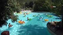 Sıcaktan bunalan su parkına koşuyor