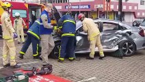 Na noite desta terça-feira, 8, um acidente entre um carro e uma moto deixou um adolescente de 16 anos gravemente ferido, no cruzamento da Avenida das Palmeiras com a Rua Agenor Camargo, no Jardim Copacabana, em Maringá. Imagens de câmeras de segurança da região registraram o momento da colisão, que foi violenta.