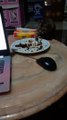 The reaction of the cat stealing the fish